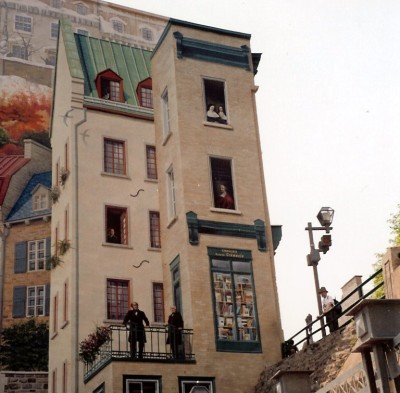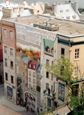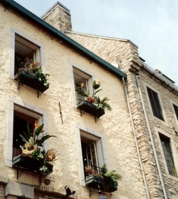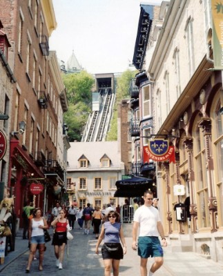 | Quebec è una città piccola ed accogliente, dove tutte le case non sono alte più di tre piani, col tetto a punta (per far scivolare la neve d'inverno) e coloratissime. Qui tutto ci ricorda la Francia : i cartelli sono bilingue, i nomi delle strade, degli alberghi e dei negozi sono in francese. Sulle porte si possono trovare la bandiera bianca e rossa del Canada e quella bianca e blu del Quebec, che da anni cerca la scissione dal resto del paese. |