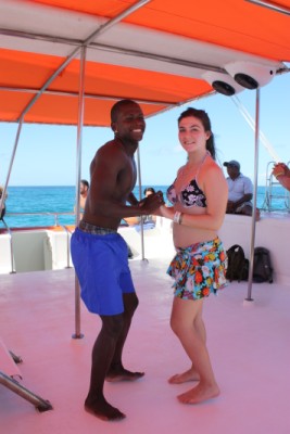 | A bordo ci aspettano ballerini dominicani che ci coinvolgono nei balli tipici di salsa/bachata, offrendo a tutti ron (rum) e coca cola. |