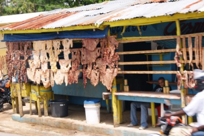 | Qui è usuale vedere appesa alle case carne affumicata che i dominicani condiscono con olio e limone. |