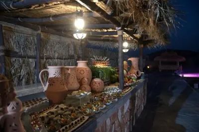 | La cena beduina sotto le stelle, con i suoi tavoli bassi e cuscini variopinti come sedie, mi ha trasmesso una sensazione di primordiale libertà, dove tutto era informale e abbondante: Hummus (crema di ceci e semi di sesamo servita con pane arabo), Tabbouleh (insalata di mais essiccato, menta, cipolla e prezzemolo), Shawarma (involtino di pane azzimo farcito con agnello e pollo speziati), datteri e dolci dai nomi più strani |
