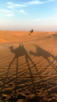 | Ad Abu Dhabi il Deserto arriva fino ai bordi della città e offre un paesaggio straordinario con le sue dune e i suoi colori. Di pomeriggio è bellissimo gustarsi il tramonto nel silenzio delle dune ed il tepore della sabbia che comincia ad assumere diverse sfumature aranciate. |