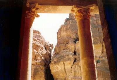 | All'improvviso, dopo aver camminato a piedi per 5 km. lungo il canyon che porta alle rovine e dopo aver attraversato il siq, ti appare Petra, l'antica città rosa del deserto ... e allora rimani senza parole di fronte a questo luogo di favole. |