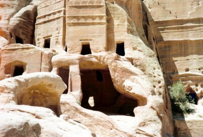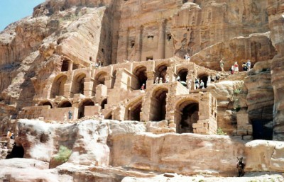 | Qui a Petra è un susseguirsi di tombe, monumenti, case, scavati nella roccia, con colori che vanno dal tenue rosa al rosso cupo. Antiche scale scolpite nell'arenaria, ripide e faticose, ci portano in stanze dove, forse, i nabatei, svolgevano i loro riti ancora oggi per noi carichi di mistero. |