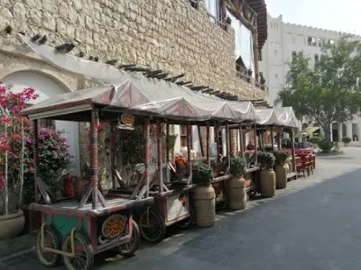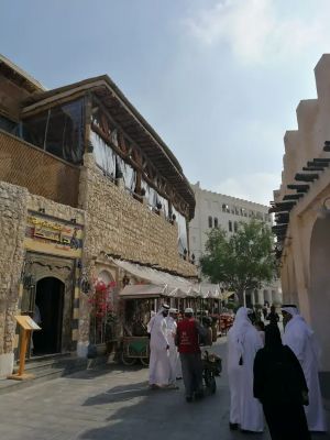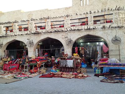| Souk Waqif, dove si possono acquistare canditi e dolci arabi, capi di abbigliamento tradizionali ( il "thobe" per gli uomini e la "abayah"per le donne), spezie e souvenir |