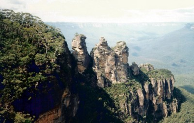 | Le tre sorelle sono il simbolo delle Blue Mountains (920 m.), rese famose da una leggenda aborigena , secondo la quale tre bellissime sorelle della tribù di Katoomba si erano innamorate di tre fratelli della tribù di Nepean. Ma le leggi tribali proibivano l'unione, quindi i tre fratelli decisero di rapire le sorelle provocando una guerra tra le due tribù. Un santone, per sottrarre le ragazze ai pericoli della guerra , le trasformò in rocce, con l'idea di ritrasformarle poi in esseri umani. Ma lui stesso morì nella battaglia e non potè terminare l'incantesimo ... |