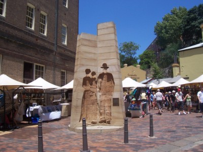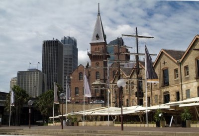 | "The Rocks" è un pittoresco quartiere traboccante di testimonianze storiche risalenti al primo insediamento dei coloni. E' un labirinto di vie, vicoli ciechi e giardini interni, in cui si affollano negozi, magazzini e case a schiera del XIX secolo. |