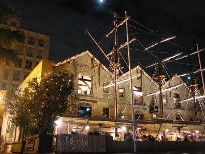 | Molto particolare è il Ristorante "Waterfront" a The Rocks, realizzato come veliero coloniale. Per la prima volta qui ho mangiato diversi tipi di carne, tra cui emù e coccodrillo, quest'ultimo per me decisamente disgustoso. |